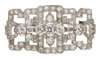 modelled in unmarked white metal, of pierced rectangular design and set throughout with graduated old round and cushion cut diamonds, rose cut diamond detail, in a fitted tooled leather box