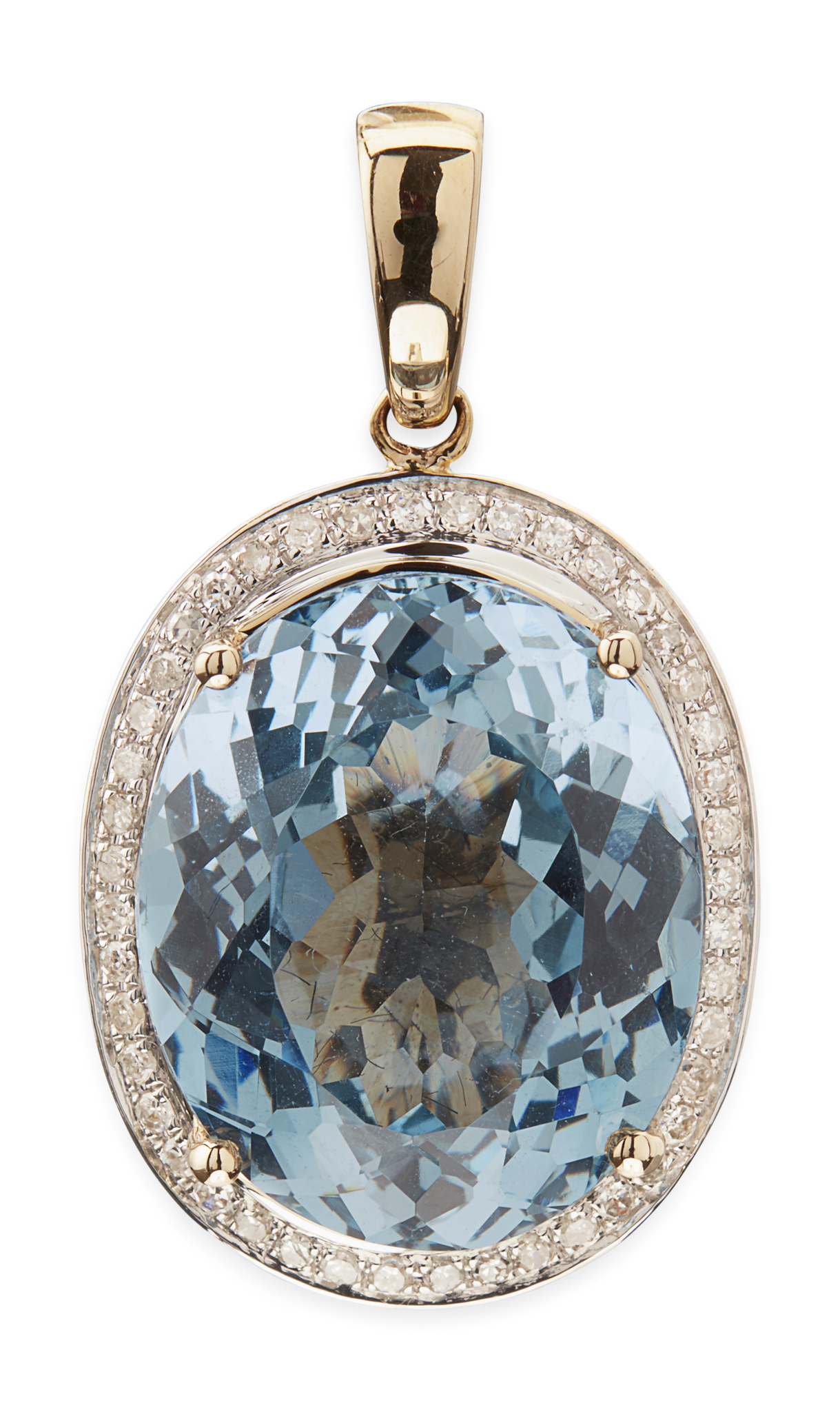 Length (including bale): 29mm, estimated total gem weight: topaz 18.00cts, diamonds 0.40cts