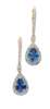 each claw set with a pear shaped sapphire, in a single border of small round cut diamonds, below a small round diamond, the suspension loop similarly set, clasped hook fittings