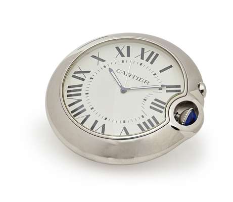 of traditional form, circular dial, Roman numerals, chrome case, velvet pochette and papers