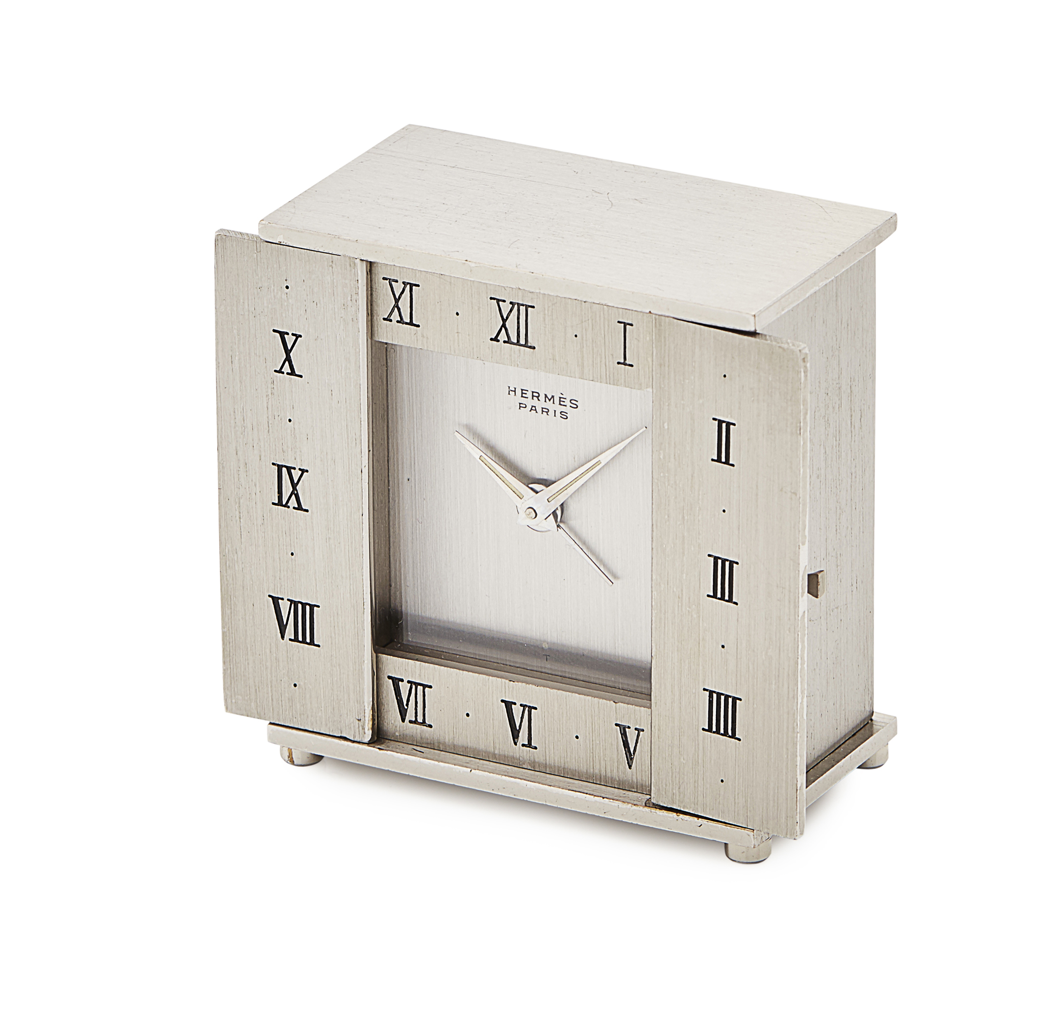 autel, Palladium satin finish case with folding doors, keyless wind eight day movement, Roman numerals, Ref; 1364