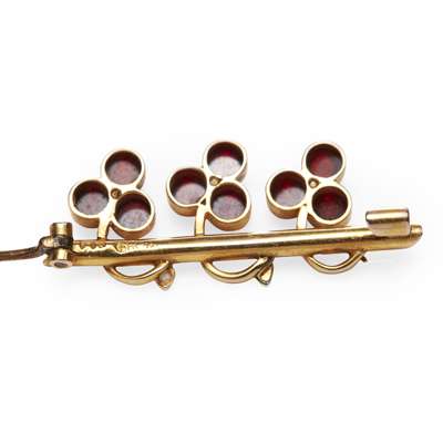 with indistinct marks for Alfred Thielemann for Fabergé, modelled as three flowers, each set with three garnet cabochons and rose cut diamond detail