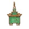 mounted in unmarked yellow metal, set with a shaped rectangular emerald panel with engraved initials D.O.M, surmounted by a further rectangular and square cut emerald, with indistinct marks to the bale