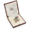 modelled as a flower in bloom, set throughout with graduated round, cushion and rose cut diamonds, round cut emeralds and oval cut rubies, modelled in unmarked white metal with brooch and safety chain fittings, in a fitted box singed Garrard & Co
