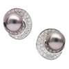 each set with a Tahitian pearl in a scrolling outline pavé set with graduated round brilliant cut diamonds, to post and clip fittings