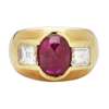 Ring size: N/O, estimated gem weights: ruby 5.15cts, diamonds 1.09cts each