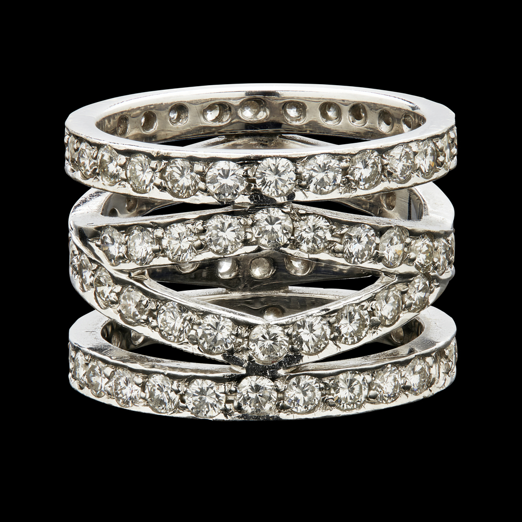 of pierced cross over design, set throughout with small round cut diamonds, unmarked