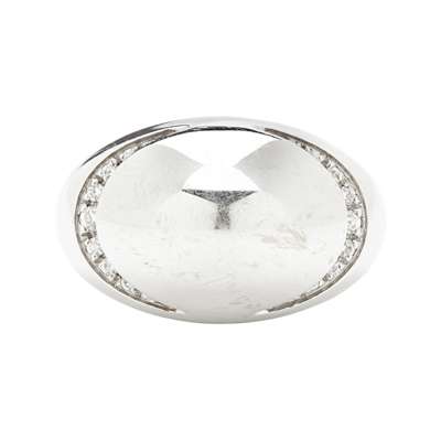 of domed design, the incised detail pavé set with round brilliant cut diamonds, inside shank signed Bulgari 750, in a Bulgari box