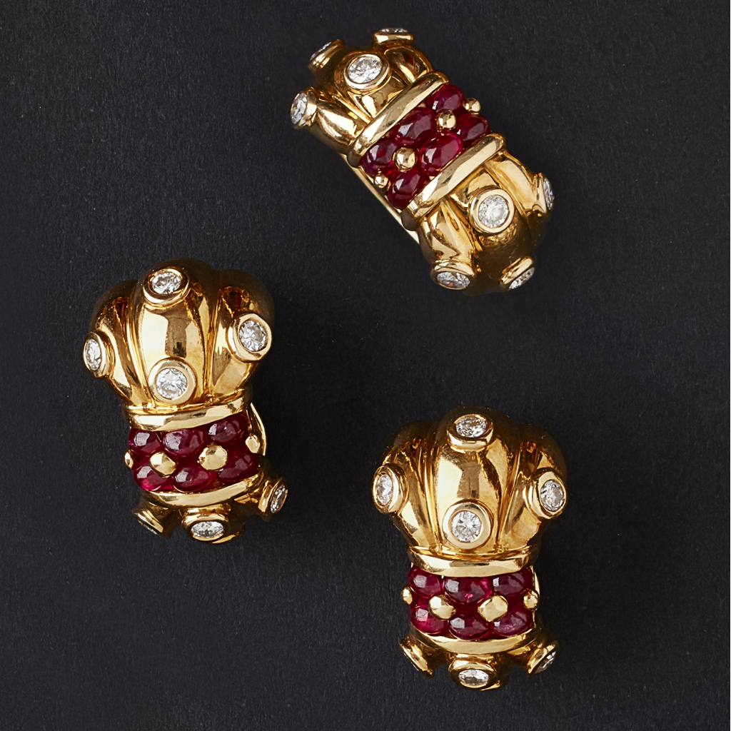 AVAKIAN - A ruby and diamond set ring with matching earrings