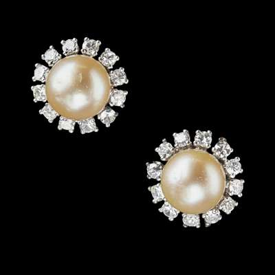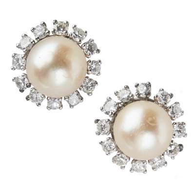 A pair of pearl and diamond set cluster earrings