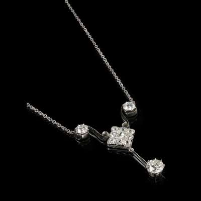 Length of pendant: 48mm, estimated principal diamond weights: 1.73cts, 0.56cts & 0.59cts