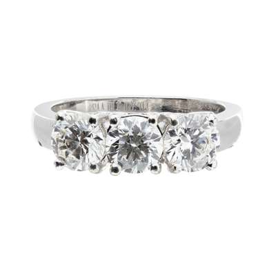 claw set with three round brilliant cut diamonds, to a plain white metal shank stamped 750; with accompanying report by Institut de Gemmologie Monaco, dated 28.11.2008, numbered 2008120102, stating that the diamonds are 2.01cts total, H-I colour, VVS2 clarity