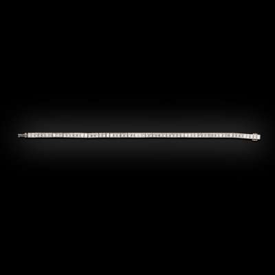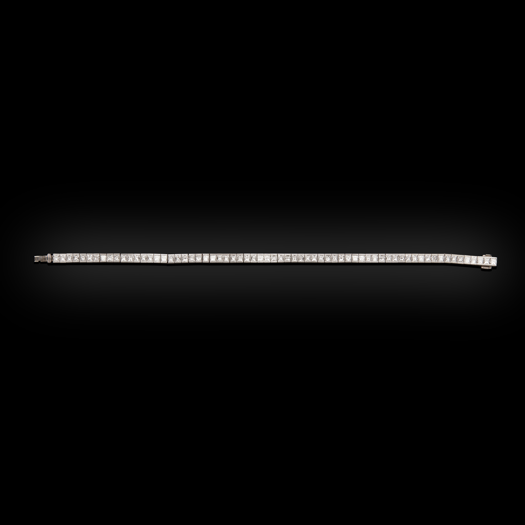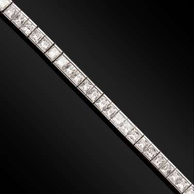 set with a single row of sixty-six princess cut diamonds, set in 18ct white gold, with a concealed clasp and safety clip
