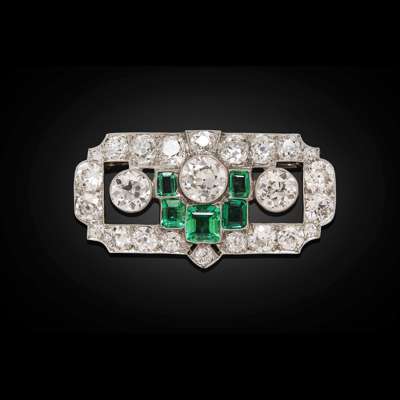 A 1930s emerald and diamond set brooch