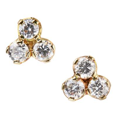 each set with a cluster of three round brilliant cut diamonds, set in yellow metal, to post and butterfly fittings, unmarked