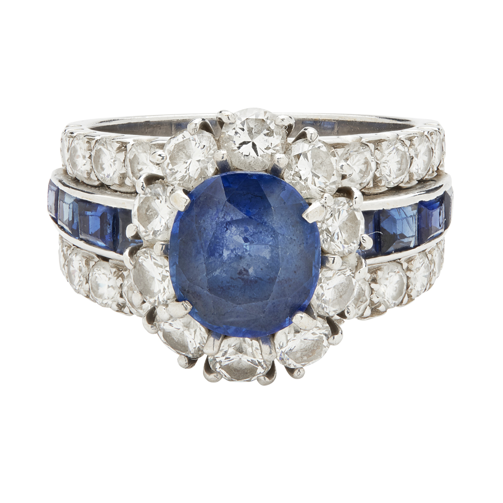 Ring size: M, estimated gem weights: sapphire 2.22cts, principal diamonds 0.80cts