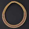 of tapering beaded design, collet set with graduated floral clusters, each composed of four round cut rubies and a central collet set round brilliant cut diamond, to a concealed clasp and safety clip, stamped 750 MOUAWAD