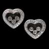 each modelled as a heart, the central glazed panel with three 'loose' diamonds, in a border of small round cut diamonds, to post and butterfly fittings