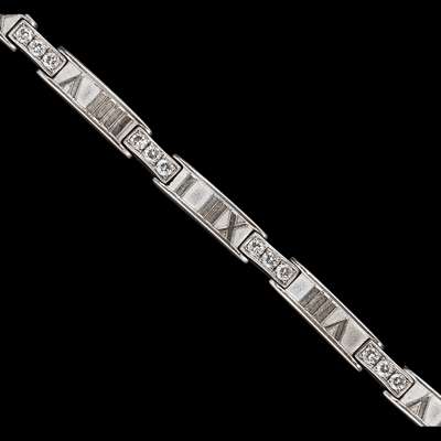 from the Atlas collection, the alternating links with either Roman numeral detail or set with three small round cut diamonds, to a concealed clasp and safety clip signed Tiffany & Co