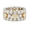 claw set with two rows of round brilliant cut diamonds, the central row of alternating round brilliant cut colourless diamonds and oval cut yellow diamonds, set in yellow and white metal, stamped 750