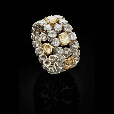 Ring size: N, estimated total diamond weights: colourless diamonds 6.30cts, yellow diamonds 1.20cts