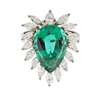 claw set with a pear shaped synthetic emerald, in a border of marquise and pear shaped diamonds, to a plain 18ct gold shank with applied sizing band
