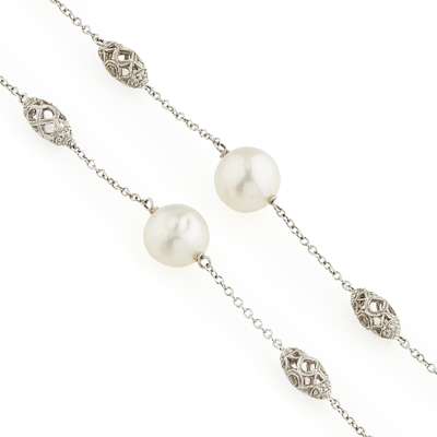 A South Sea pearl and diamond set necklace