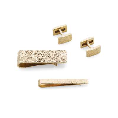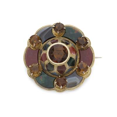 A Victorian Scottish gold and polished hardstone gentleman's dress set