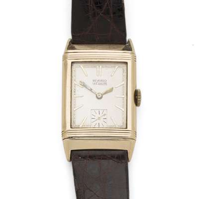 JAEGER LECOULTRE - A 1930s gentleman's 18ct gold and enamel wrist watch