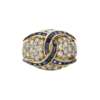 pavé set throughout with graduated round brilliant cut diamonds, with an interlocking curve channel set with baguette cut sapphires, shank stamped PP&Co 750, French control marks to outside of the shank