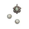 each claw set with a circular opal cabochon in a single border of round brilliant cut diamonds, to post and butterfly fittings; together with a late Victorian opal and diamond set brooch, of pierced scrolling design, claw set with an oval opal cabochon and throughout with old round and rose cut diamonds (2)