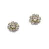each claw set with a round brilliant cut diamond, in a border of eight round brilliant cut diamonds, to post and screw back fittings