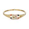 of interlocking ribbed design, the central knot pavé set with graduated round brilliant cut diamonds, with coral and onyx panel detail, the collar of hinged design, with concealed clasp and safety clip