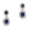 each composed of two clusters claw set with an oval cut sapphire in a border of small round brilliant cut diamonds, set in 18ct white gold to post and butterfly fittings