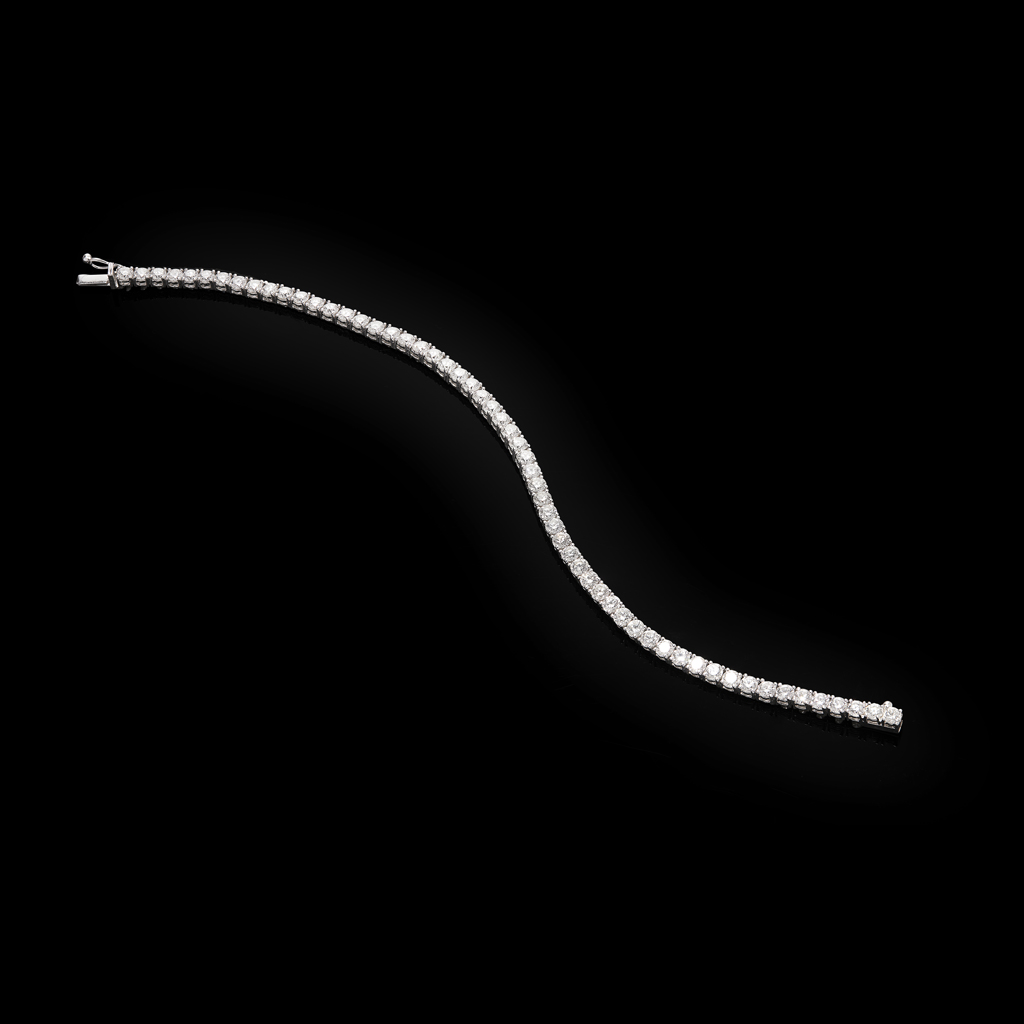 claw set with a single row of fifty-eight round brilliant cut diamonds, to a concealed clasp and safety clip, stamped 750