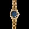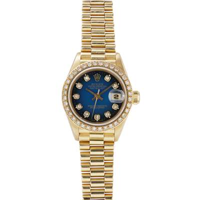 Oyster Perpetual Datejust Ref. 69178, all gold diamond set bezel and numerals, blue dial, sweep second hand, screw down crown, president bracelet, serial no. E257723, circa 1990