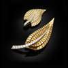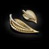 each modelled as a stylised leaf, the pierced polished ground, set with a central row of graduated round brilliant cut diamonds, both with double pin fittings, the smaller with pendant loop, the larger signed Van Cleef & Arpels, the smaller numbered, each marked to side (2)