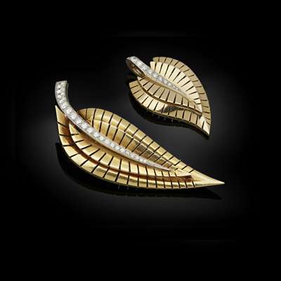 Two similar 'feuilles' brooches from 1937 were exhibited, Van Cleef & Arpels, Musée de la Mode et du Costume, Paris, 18 June - 31 October 1992, and are illustrated, Van Cleef & Arpels, Paris Musées, 1992, fig. 145.