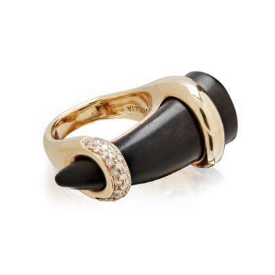 designed as a wood claw sliding into a pavé set diamond loop on one side of the band, signed Oromalia and marked to shank