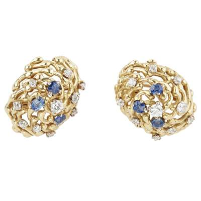 A pair of 1970s 18ct gold sapphire and diamond set earrings, John Donald