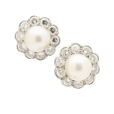 A pair of pearl and diamond set cluster earrings, possibly Cartier