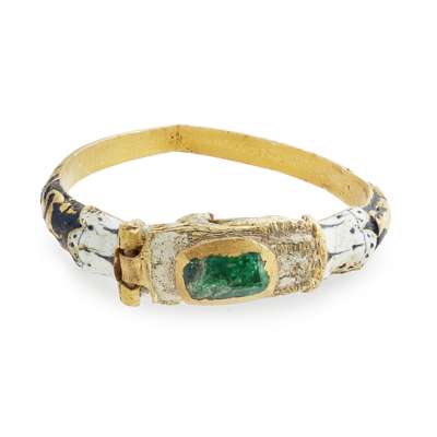 A 17th century enamel and emerald set fede ring