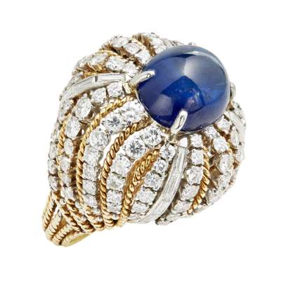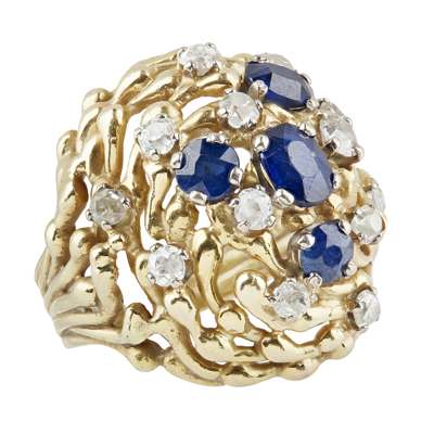 A sapphire and diamond bombé cocktail ring