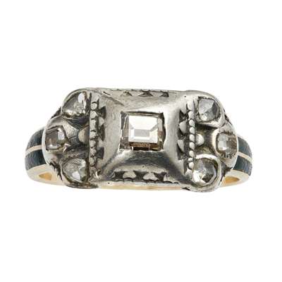 An early 18th century enamel and diamond set ring