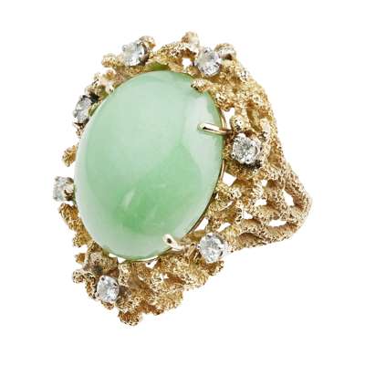 A jade and diamond set cocktail ring
