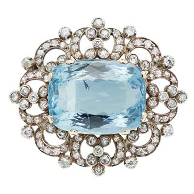 An early 20th century aquamarine and diamond set brooch