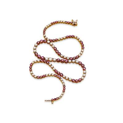 A ruby and diamond set line necklace, Tiffany & Co.