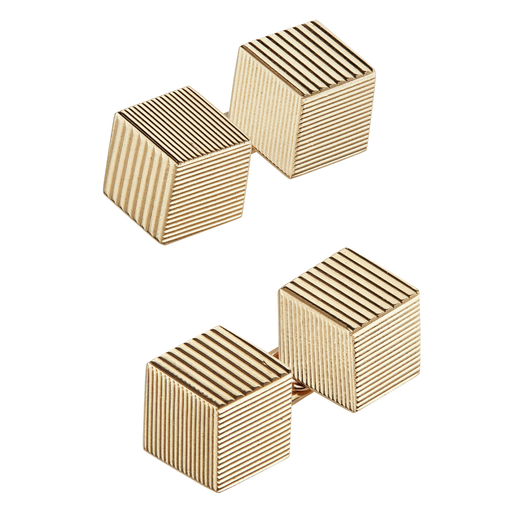 each formed as two hexagonal panels geometrically engraved to simulate a cube, with single link connector, each marked on terminal and link