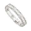 composed of fancy articulated links, set at intervals with two rows of four channel set round brilliant cut diamonds, to a concealed clasp and safety clip, stamped 14k
