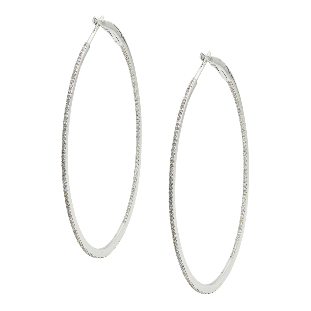 each pavé set with round cut diamonds along the front and inside of hoop, with two further diamonds pavé set inside hinged clasp